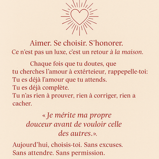 Chaque mot de ce message a été écrit pour t’ancrer, te rappeler que ton amour n’est pas une option : c’est ta base, ton essence, ton pouvoir.